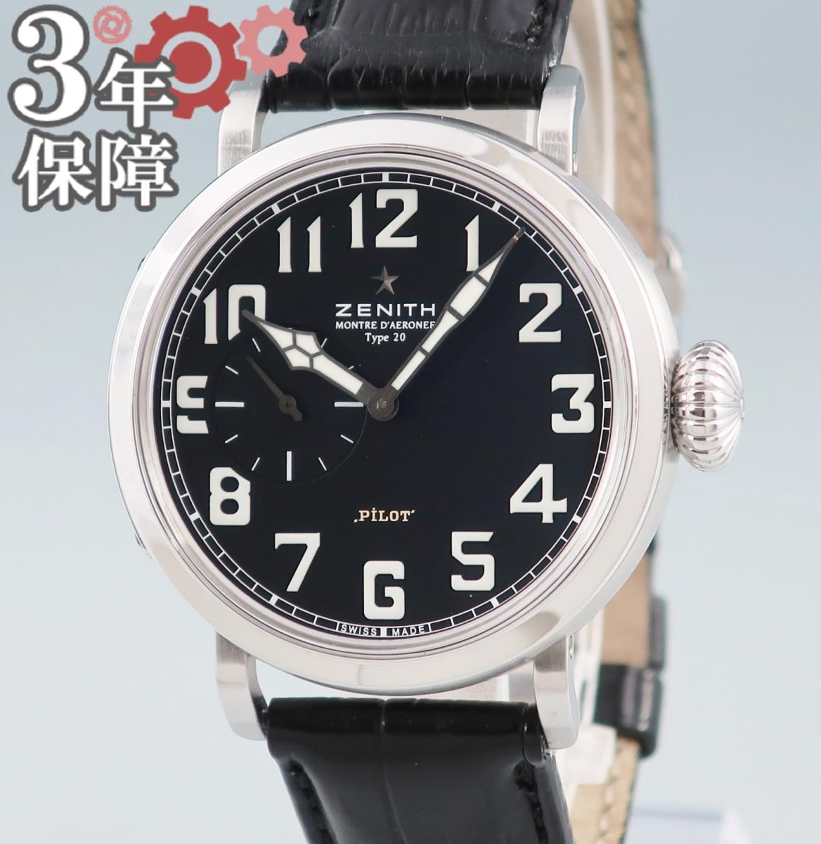 ゼニス ZENITH パイロット アエロネフ タイプ20G スモールセコンド 03.1930.681 自動巻 メーカーOH済 メンズ 腕時計 ブラック 黒 ウォッチ クロコ 【中古】 【店頭受取対応商品】