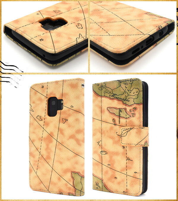 【送料無料】【Galaxy S9 SC-02K/SCV38用】ワールドマップデザイン手帳型ケース(ギャラクシー s9 sc-02k scv38 エーユー ドコモ 大人 兼用 茶 緑 黒 二次会 冬 秋 手帳型ケース ストラップ おしゃれ 可愛い かわいい カバー ベルト付き おすすめ)[M便 1/3]