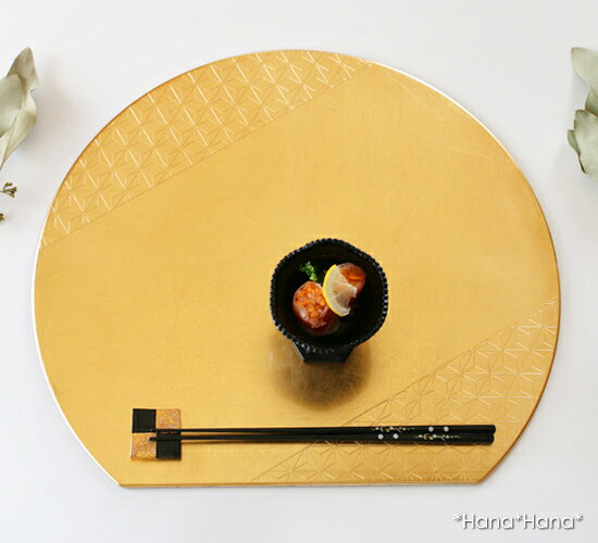 日本の美 漆器 半月プレイスマット S 折敷 35.6cm 麻の葉 (ゴールド地 洋金箔) 麻の葉紋様のさりげない装飾が小粋な半月型の折敷(プレイスマット)です。